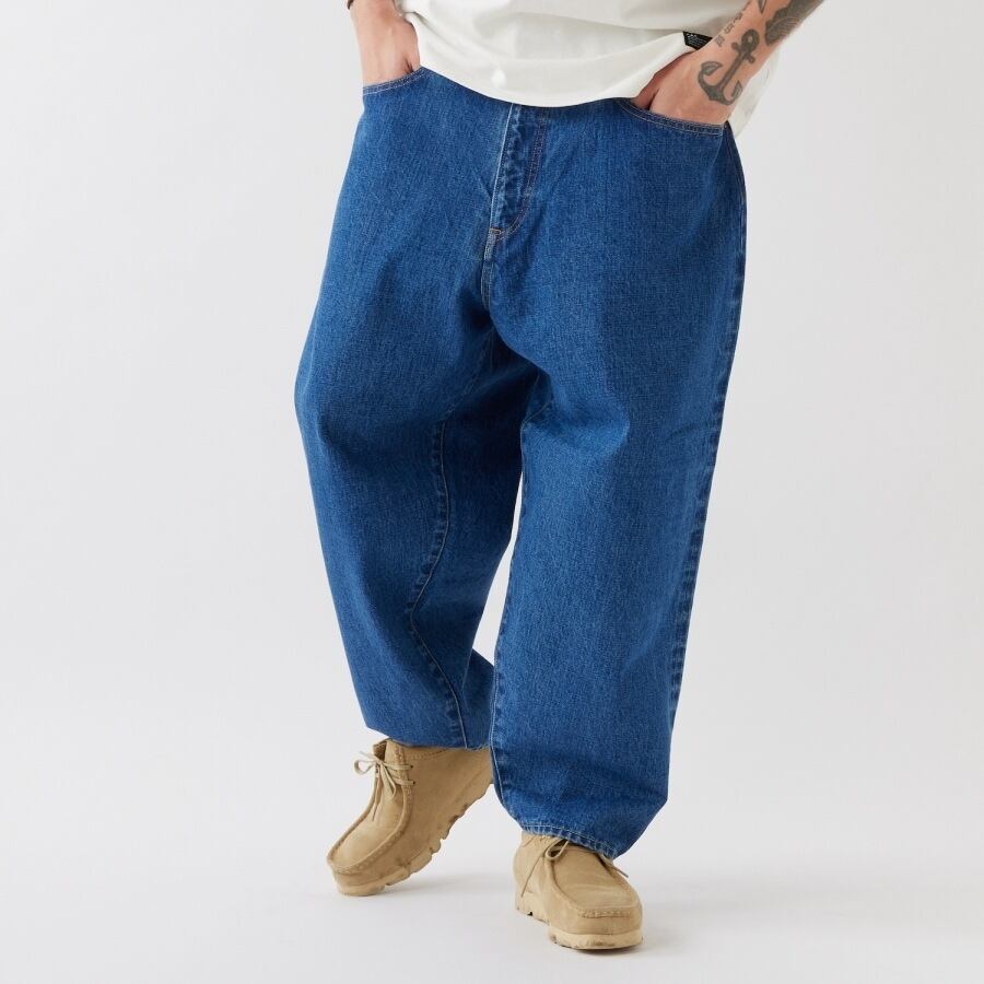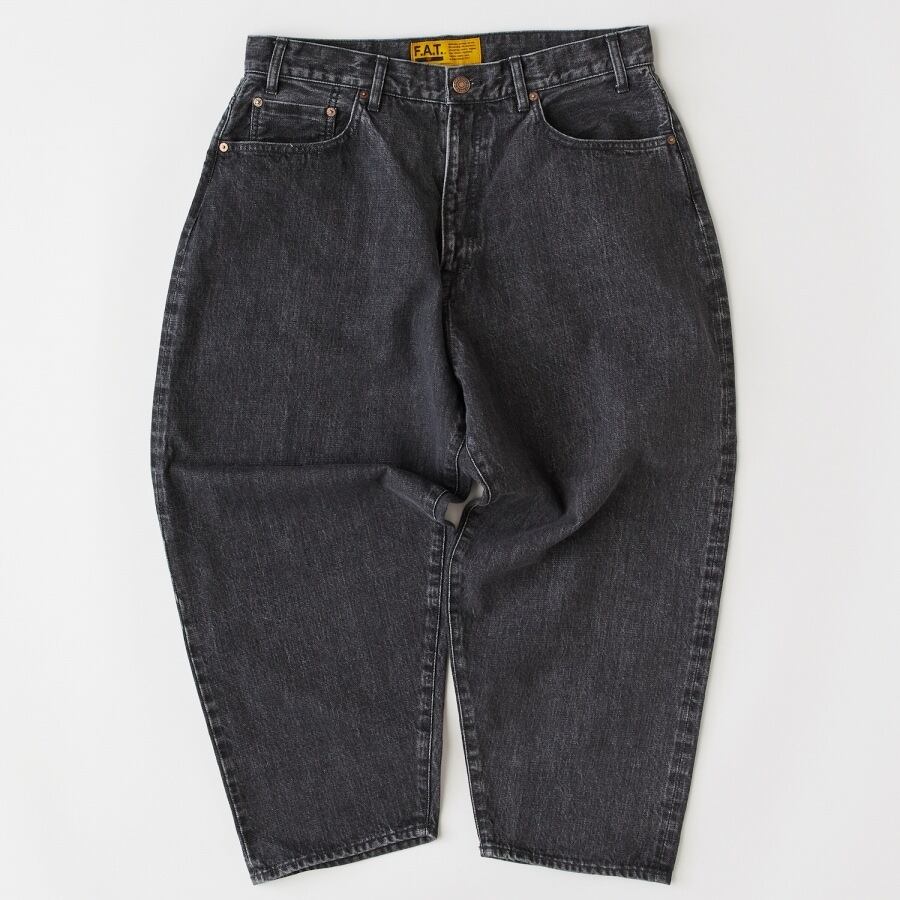 F.A.T.のこだわりが詰まったオリジナルデニム“247”をベースに、ヒップまわりから裾にかけてボリュームをもたせることでよりワイドシルエットを実現した5ポケットパンツ。