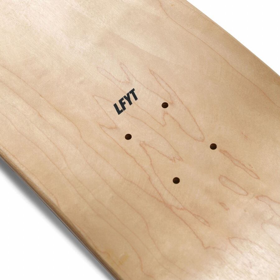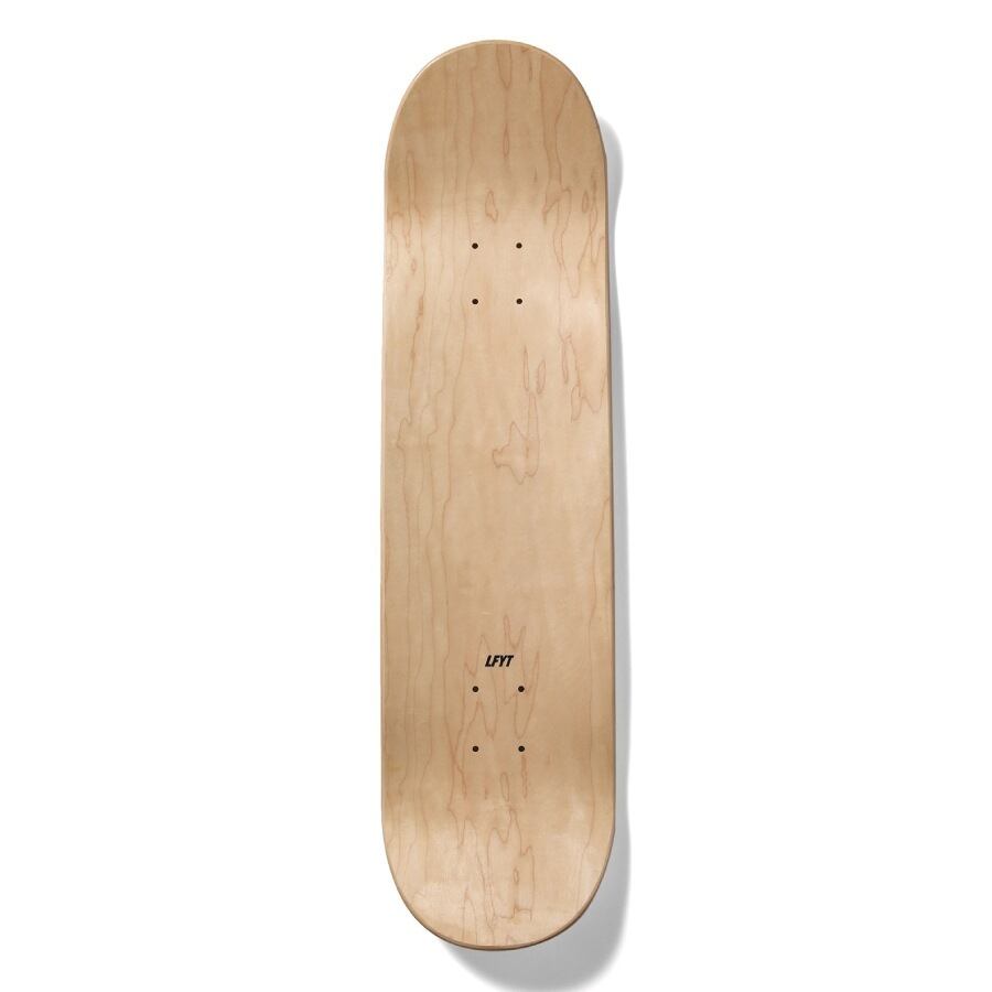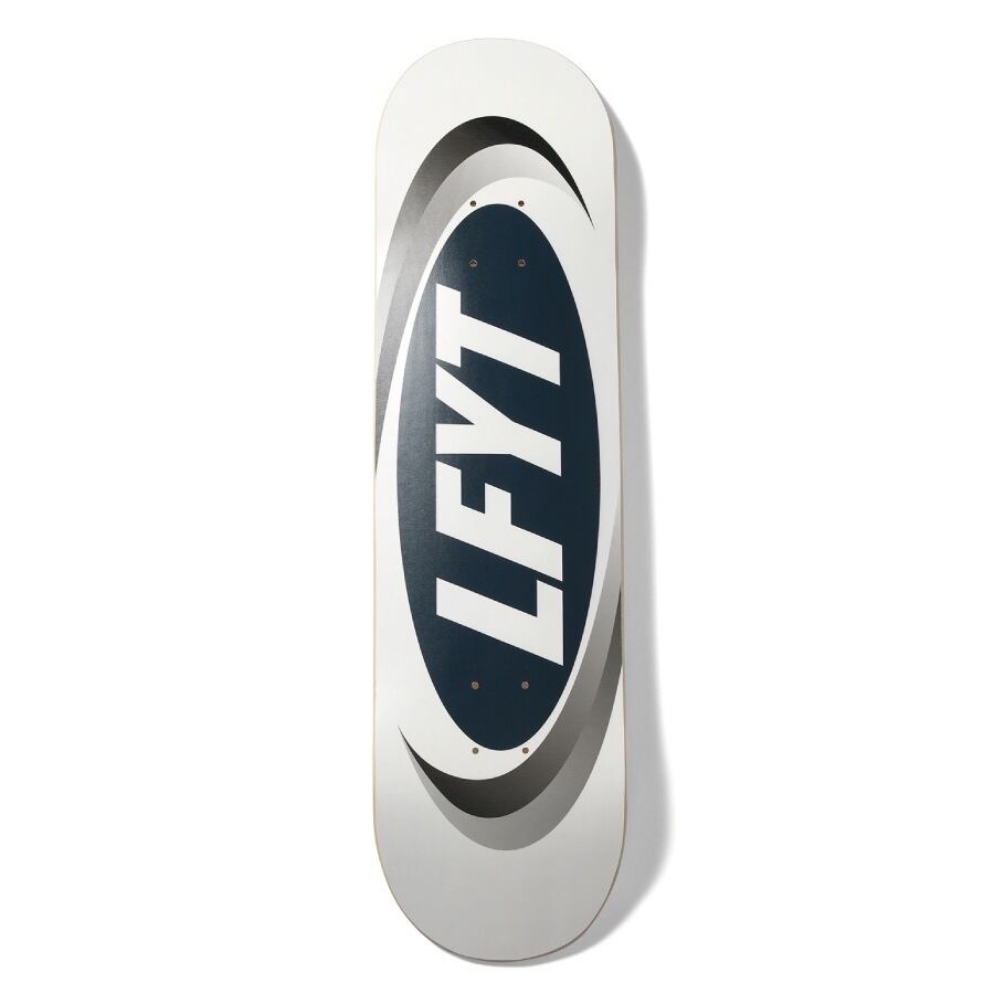 エクストリームスポーツをモチーフにしたデザインからインスパイアされたオーバル型グラフィックのスケートデッキ。