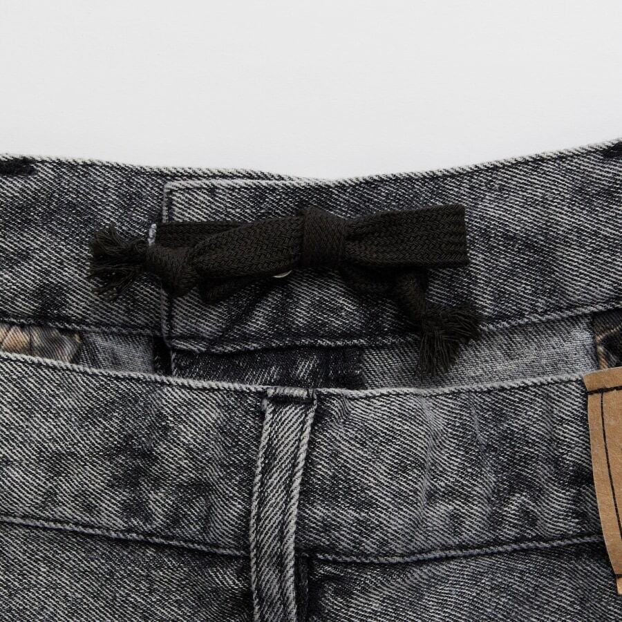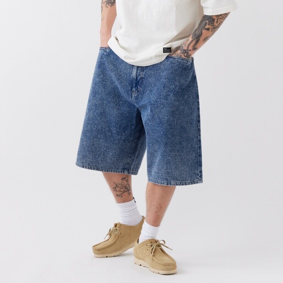 ケミカルウォッシュを施した独特なムラのある加工感が印象的なデニムバギーショーツ。