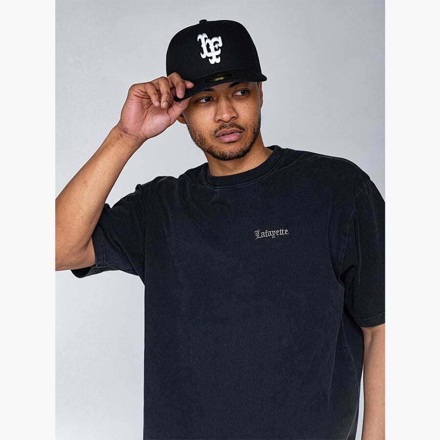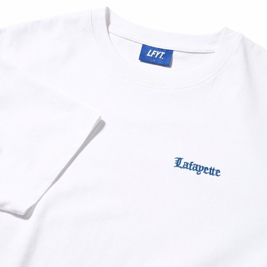オールドイングリッシュ調のLafayetteロゴをワンポイントで刺繍したTシャツ。