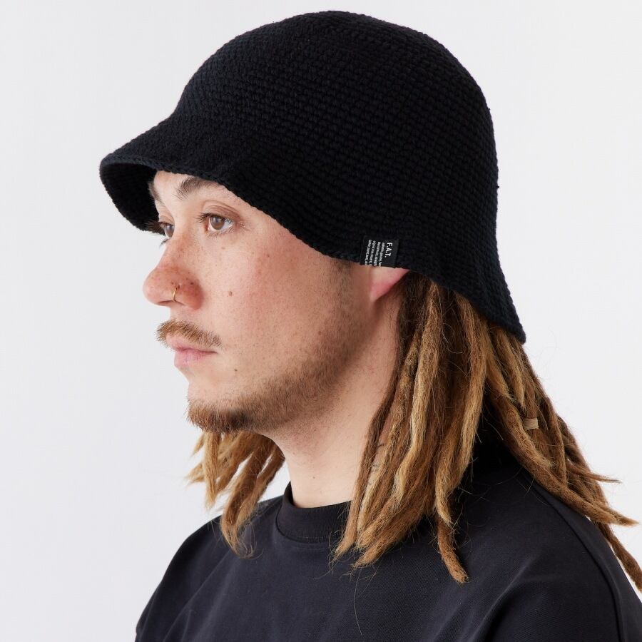 ハンドメイドによるクロシェット編みが印象的なニットハット。