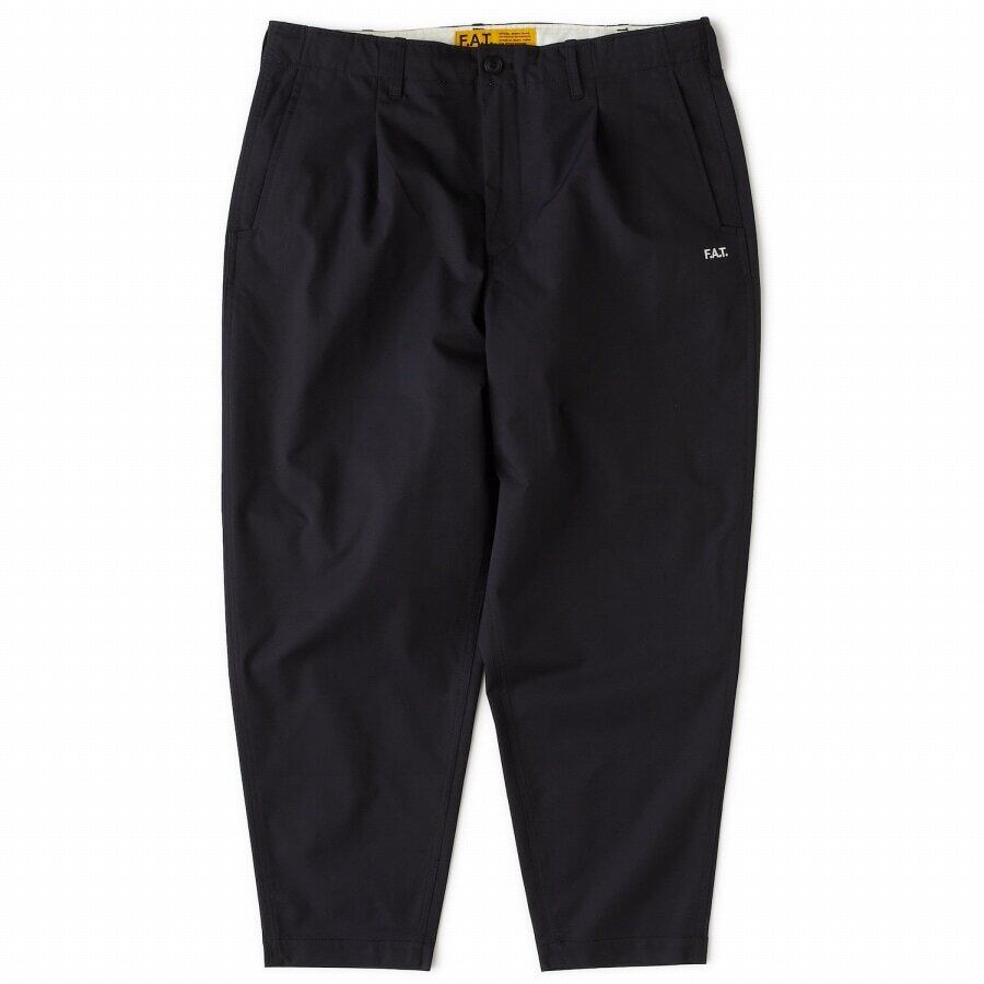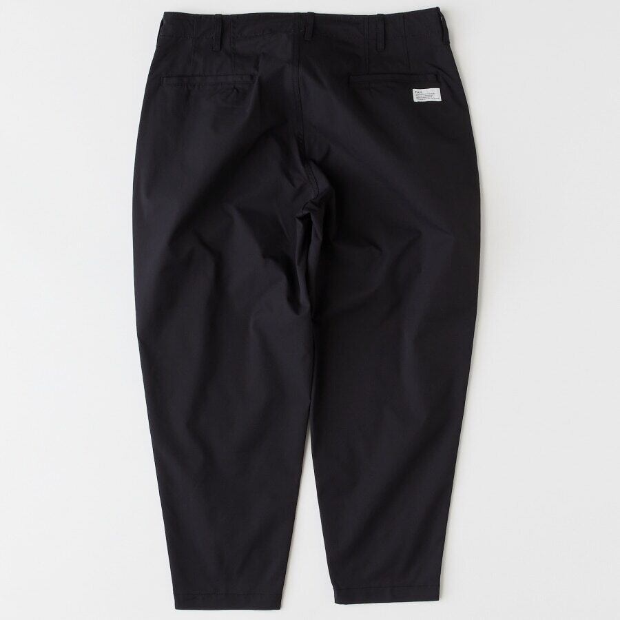 伸縮性の高いポリエステルツイルを使用したチノパン。膝から裾にかけてすっきりとしたテーパードラインと、9分丈レングスによる絶妙なシルエットが魅力。穿き心地の良さはもちろんのこと、軽さと撥水性を備えたファブリックは独特の光沢感でコーディネートにアクセントを加えてくれる。ウエストはドローコードを備え、ベルトレスでイージーパンツとして着用可能。フロントのロゴ刺繍とバックのブランドネームが程よいアクセントに。