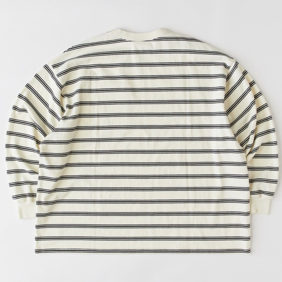 糸からオリジナルで編み上げたボーダー天竺を使用したカットソー。F.A.T.らしい絶妙なカラーリングが印象的。通常よりも身幅にゆとりをもたせたBIGシルエットは、あわせるボトムスのシルエットを変えることで、様々なコーディネートが楽しめるアイテム。ポケットの刺繍や裾のブランドネームが程よいアクセントに。