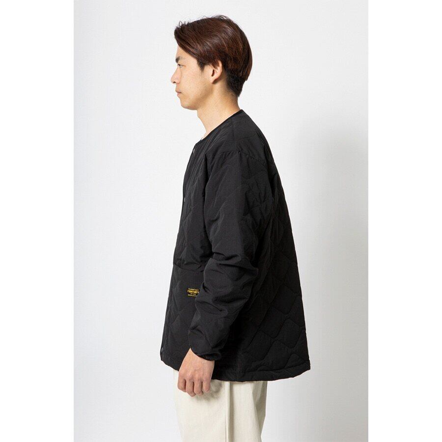 インナー兼ライトアウターのボリューム感のノーカラー ジャケット。シャリ感の有るしっかりとした素材感のリップストップにミリタリーデザインを彷彿とさせるキルティングを施しています。薄手ながらも中綿にシンサレートを使用し、しっかりと保温性も確保したアイテムです。