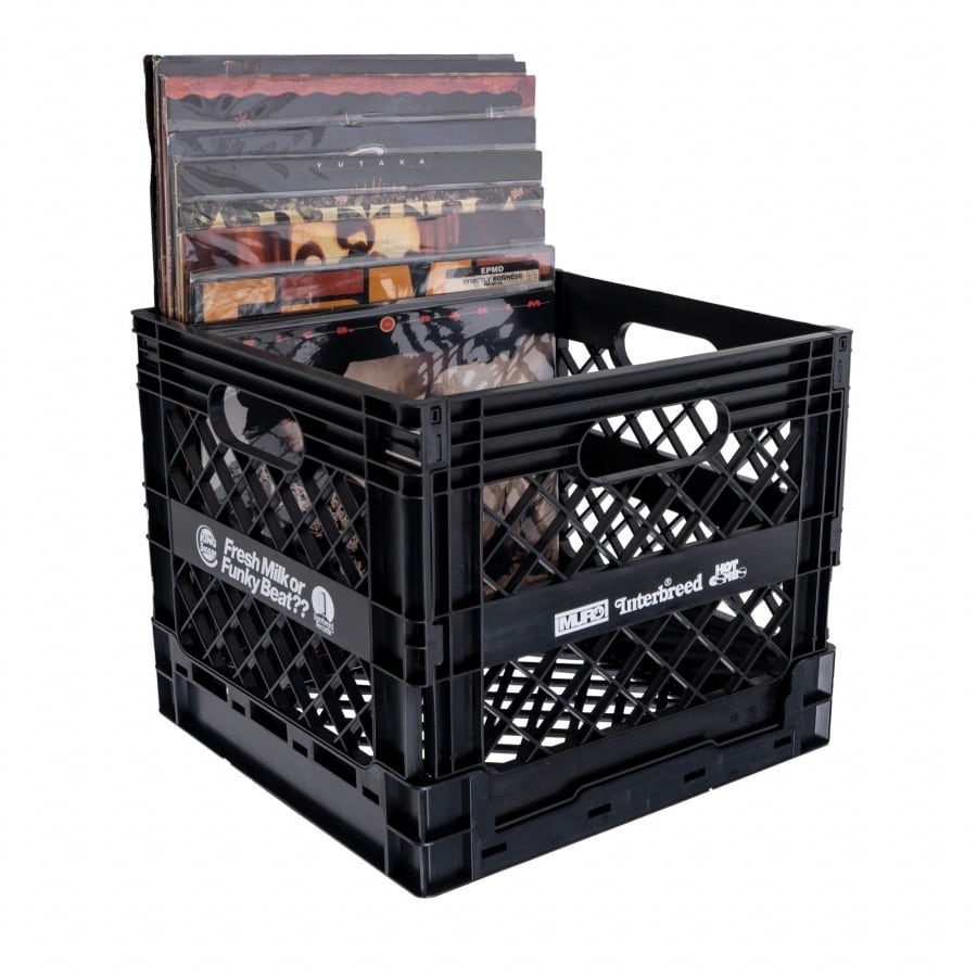 プラスチックBOXは折り畳みとスタッキングが可能な仕様で、12inchレコードを入れても重ねられるサイズは、日用品の整理や車内の収納にも便利です。
