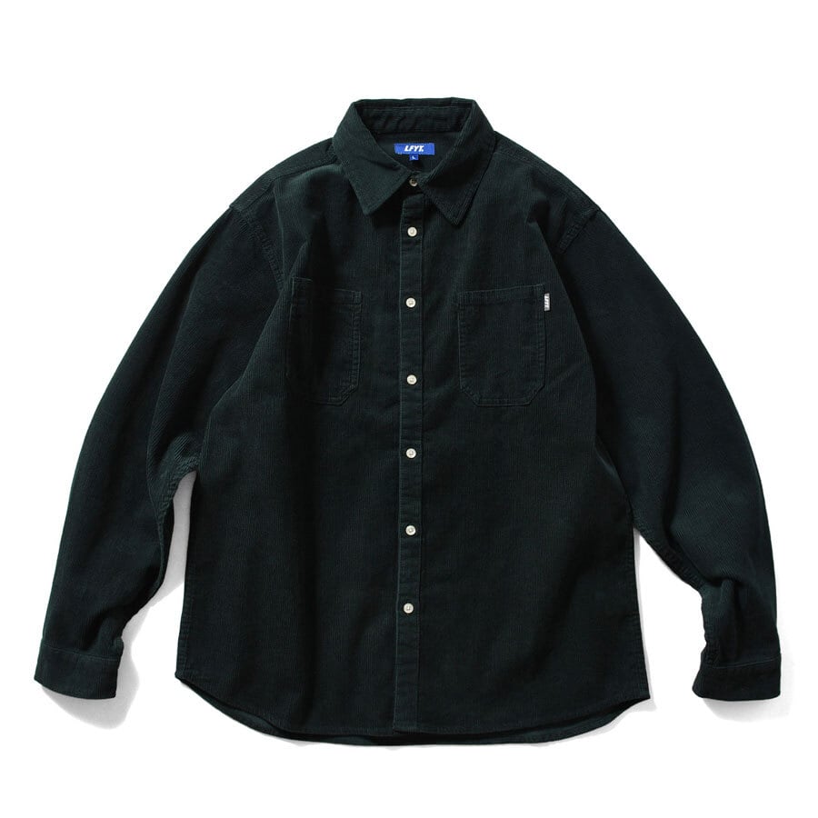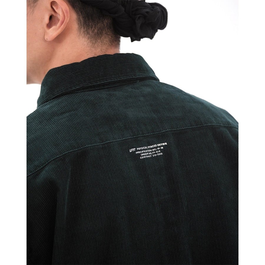 暖かみのある素材感が魅力のコーデュロイシャツ。肉厚な生地感で、やや大きめのリラックスシルエットで仕立てられている。秋冬らしい見た目と高い保温性を兼ね備えた機能的な中コールのコーデュロイ生地を採用。ポケットにはLFYTのリフレクターネームをあしらい、背面には「LFYT PHYSICAL FITNESS UNIFORM」のプリントを配置。