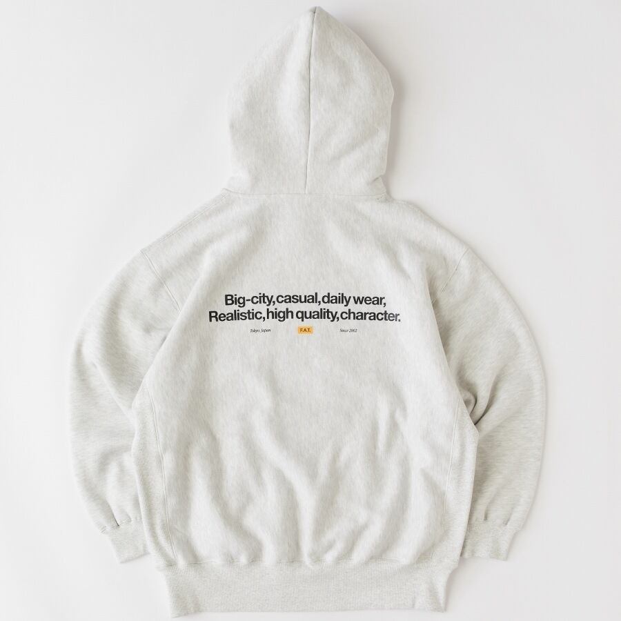 胸のシンプルなロゴ刺繍とバックプリントが印象的なスウェットパーカー。オリジナルで編み立てたT/C裏毛起毛素材は、程よい肉感で着心地の良さが特徴的。アメリカンオーセンティックを感じさせる縫製、生地方向やサイドパネルなど細部にまでこだわったアイテム。あらゆるコーディネートに欠かせないオールマイティーな1枚。ポケットのブランドネームも程よいアクセントに。