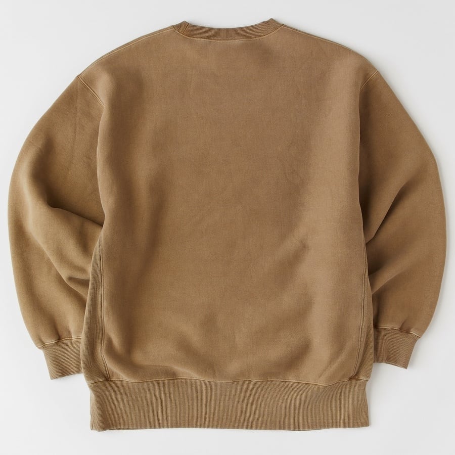 絶妙な色合いとアタリ感が印象的なピグメント加工を施したスウェットシャツ。目の詰まったT/C裏毛起毛素材は、程よい肉感で着心地の良さが特徴的。アメリカンオーセンティックを感じさせる縫製、生地方向やサイドパネルなど細部にまでこだわったアイテム。いつもとは違ったカジュアルコーディネートを楽しみたい。胸の刺繍と裾のブランドネームが程よく主張してくれる。