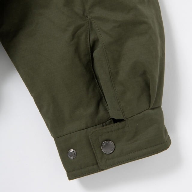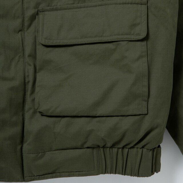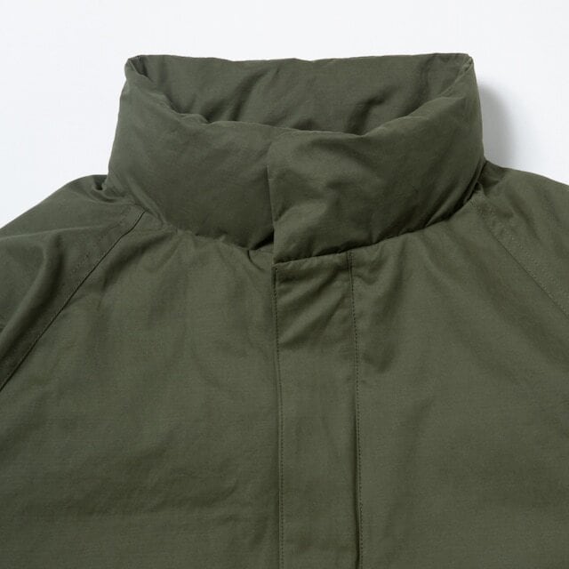 クラシカルなワーク、ミリタリーの要素をミックスしつつもシンプルに仕上げたダウンジャケット。少し起毛がかった素材感がレトロさとタフ感を両立させた仕上がりです。今季のダウンジャケットはグース素材を多めにした混率で軽量さと保温性を十分に持たせた逸品です。