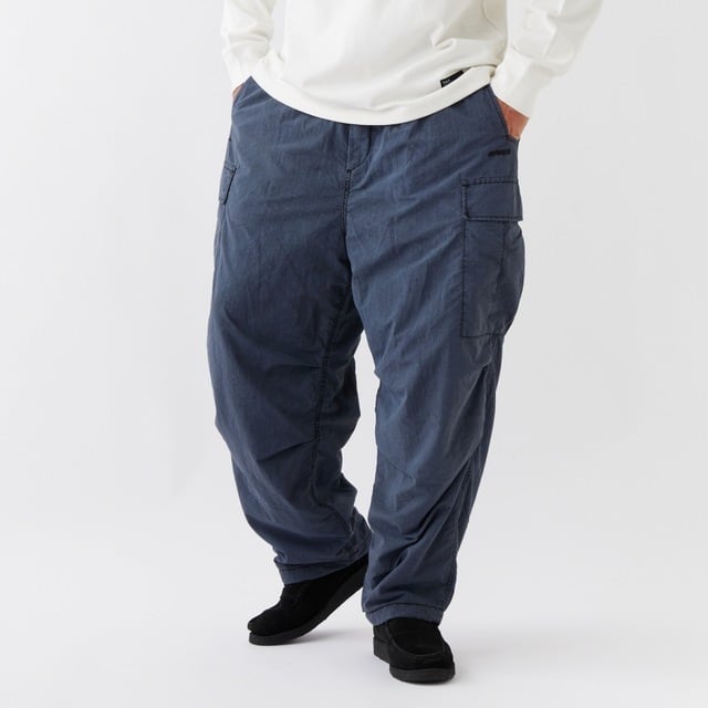 AVIREX×F.A.T.のコラボレーションによるカーゴパンツ。キメ細かいワッシャーナイロンに独自のピグメント加工を施すことで、絶妙な色合いとアタリ感を実現。オリジナルディテールを踏襲しつつも、イージーパンツ仕様へのアレンジや裏地にマイクロフリースを採用した防寒性の高さも魅力的なアイテム。両サイドのフロントポケットに施されたロゴ刺繍やバックのブランドネームがさり気なく主張してくれる。