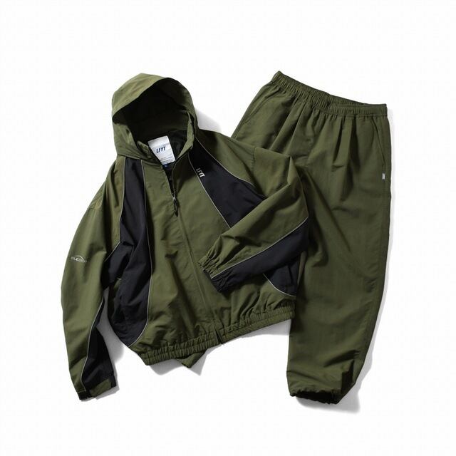 高機能SUPPLEXナイロンを使用したトラックジャケット。ミリタリーウェアとスポーツの要素を現代的に融合したデザインが特徴。左胸にはLFYTロゴ、右肩にはSUPPLEXのロゴをリフレクタープリントで配置し、切り替え部分にはリフレクターのパイピングラインをデザイン。ボックスシルエットで、裾のドローコードを絞ることでシルエット調整が可能。背面にはベンチレーション、襟部分には収納可能なフードも付属し、機能性も充実。同素材を使用したトラックパンツやランナーキャップとのセットアップコーディネートもおすすめです。