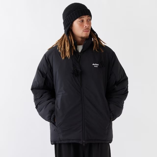 WILD THINGS×F.A.T.のコラボレーションによるインサレーションジャケット。独特なタッチのナイロンタッサーを使用し、モダンなタクティカルデザインをFATならではの視点でアレンジしたアイテム。中綿にシンサレート素材を採用することで、軽さと断熱性を持ち合わせ、ソリッドかつミニマルな印象を与えるポケットディテールなど機能性とデザイン性の高い1着。胸の刺繍や袖ポケットのネーム、ファスナータブが程よいアクセントに。
