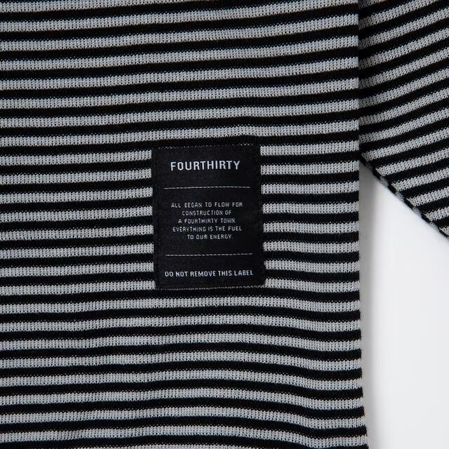 オーガニックコットンと再生PETの混紡糸で編み上げたマイクロボーダー柄のクルーネックセーター。適度な厚みとシャリ感、綺麗な素材面がシンプルながらも高級感を持たせた仕上がりです。こちらは裾にドローコードを加えた仕様になっています。