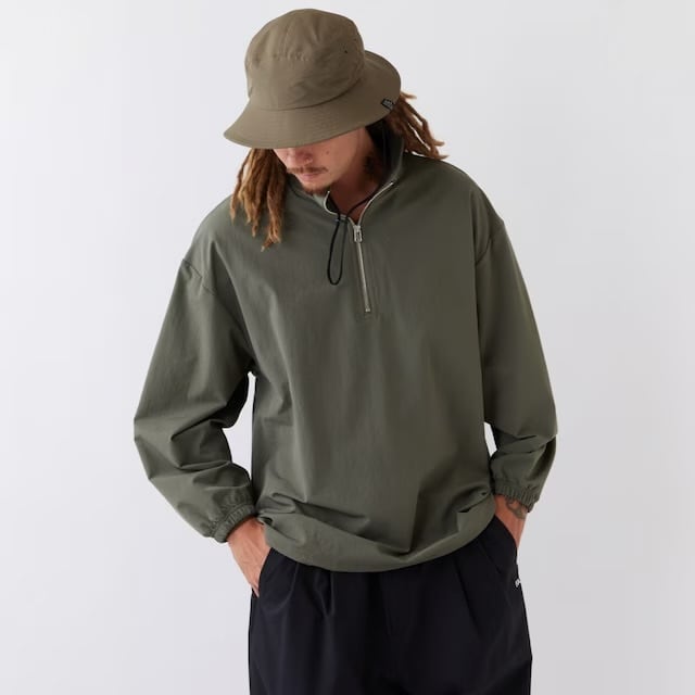 伸縮性の高いナイロンストレッチ素材を使用した、通常よりも身幅にゆとりをもたせたハーフジップカットソー。速乾性に優れており、アクティブシーンでも活躍してくれるアイテム。ドローコードを絞ってシルエットを変化させて楽しみたい。裾のブランドネームがさり気なく主張してくれる。