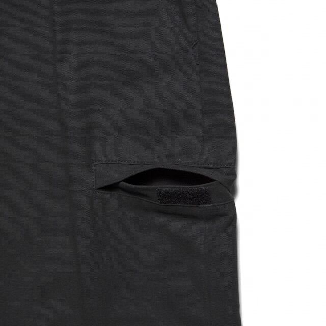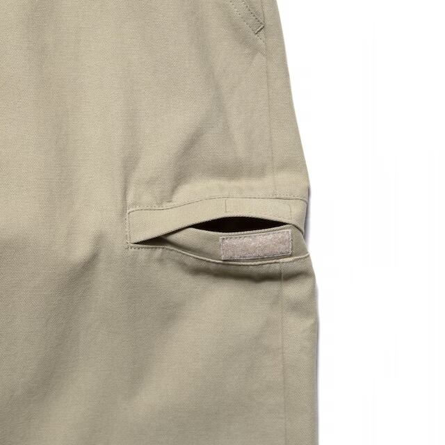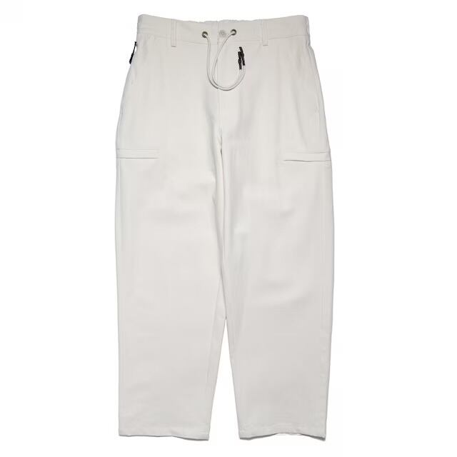 軽い風合いの平織りコットン生地を使用したストレートパンツ。無骨さを残しつつもクリーンに穿ける素材感で、シーズン問わず快適な着用感。両サイドにはマジックテープ付きポケットを配置。ストリートの機能性をさりげなく取り入れています。シルエットは太めのストレートライン。ゆったりとしたボリュームがありつつ、野暮ったくならない絶妙なバランスで仕上げています。スタイルを選ばず、デイリーに使える万能パンツ。