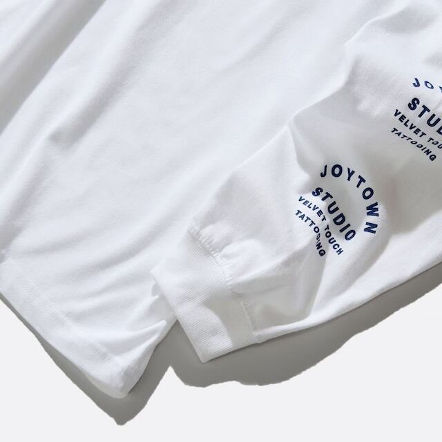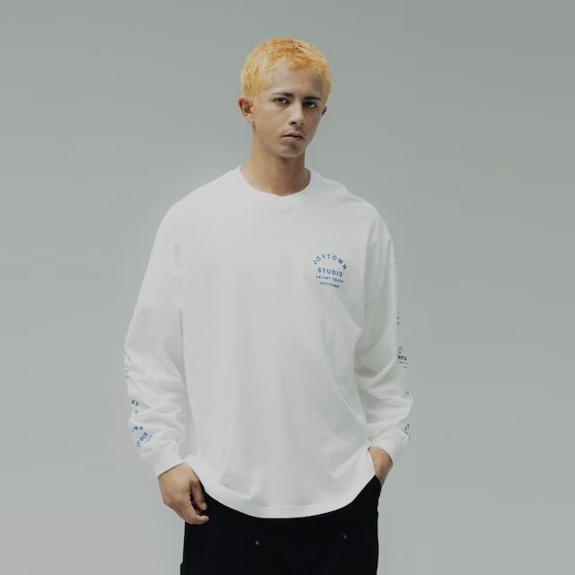 5.6オンスの生地を使用したビックシルエットロングスリーブTシャツ。ワイドシルエットで作成され手描きによるインパクトの強いグラフィックがメインウェアからレイヤードスタイルのインナーまで幅広く活躍するマルチな1枚。JOYTOWN TATTOO KAJI氏によるグラフィックデザインです。