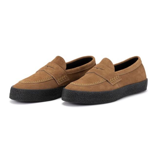 CS ローファーⅡのカラーアレンジモデル。ストリートで人気のローファーをスケート仕様にアップデート。耐久性の高いスエードをアッパーに採用し、サイドテープにはクレープソール風のデザインテープを使用。ブラックモノクローム、キャメル、グレイの3カラー展開。