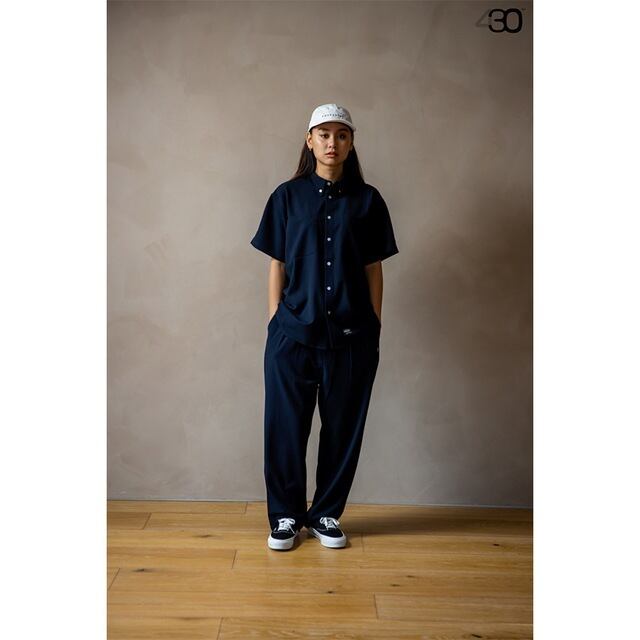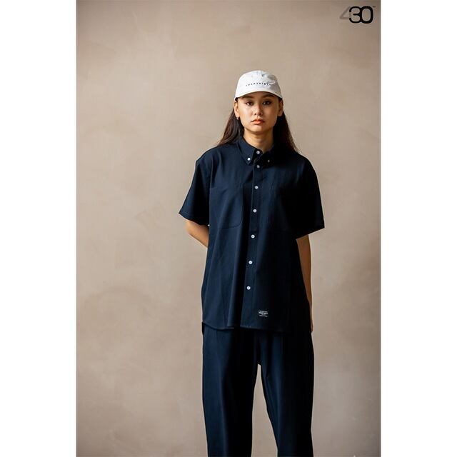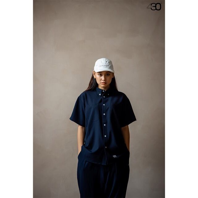 適度にゆとりを持たせながらも着丈は少し抑えたフォーサーティーの新シルエットのシャツシリーズ。オーバーサイズからの転換期にもバランスをとりやすいシルエットとなっています。こちらは定番のしっかりとしたシアサッカー素材を使用したボタンダウンタイプのS/Sシャツです。