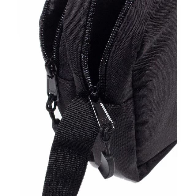 ジップ付メインのコンパートメント(保護パッド入り)と外側の小さめのコンパートメント仕様のショルダーバックは、両コンパートメントにジップ (YKK) で開け閉め可能で、100% リサイクル・ポリエステル生地で構成された、春から夏にかけてポケットが少ないシーズンに最適なコンパクトサイズの仕上がりです。