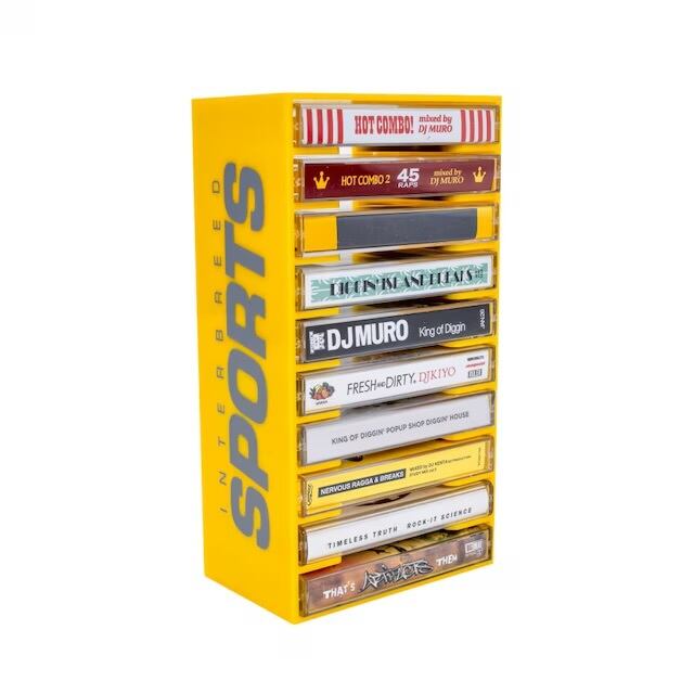 アクリル製のカセットテープラック。カセットテープ10本が収納可能で、背面のホールを使用した壁掛けも可能です。本体側面にはINTERBREED SPORTS、天面にはINTERBREED RECORDSのロゴがプリントで入ります。POPなカラーのラックは部屋のアクセントとしても最適で、場所を取らずスッキリとカセットを収納できます。