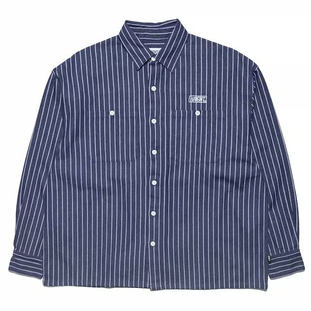 春夏シーズンに最適なストライプデニム生地を使用したロングスリーブシャツ。軽い着心地で涼しく羽織れ、季節のスタイリングに取り入れやすい一枚です。デザインのポイントとしてホワイトボタンと左胸の刺繍がさりげないアクセントに。シンプルながら表情のある生地感で、クリーンにもストリートにも合わせられる万能な仕上がりです。