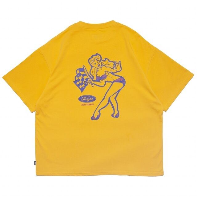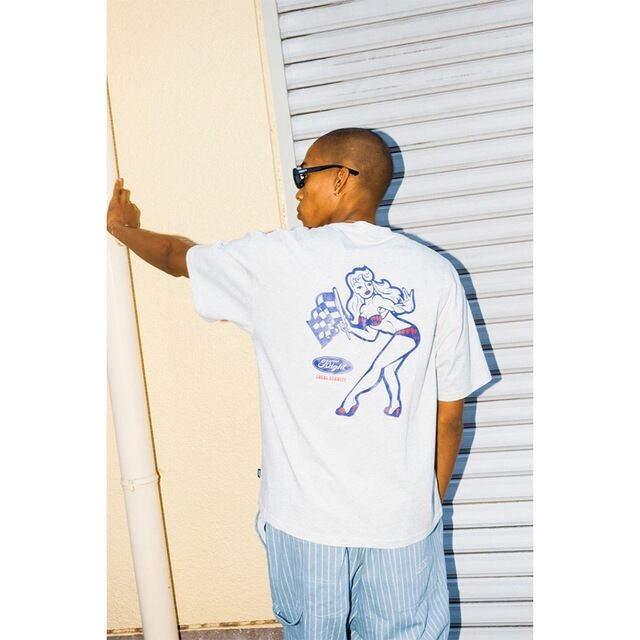 左胸とバックにプリントを施したグラフィックTシャツ。バックには、ブランドでもお馴染み RAT HOLE STUDIO描き下ろしのイラスト を大胆に配置し、POPでクセになる世界観を演出しています。デザインソースは、架空のカーディーラーのスーベニアTシャツをイメージ。どこかレトロでアメリカンな空気感をまとった、カルチャー色の強い一枚に仕上がっています。