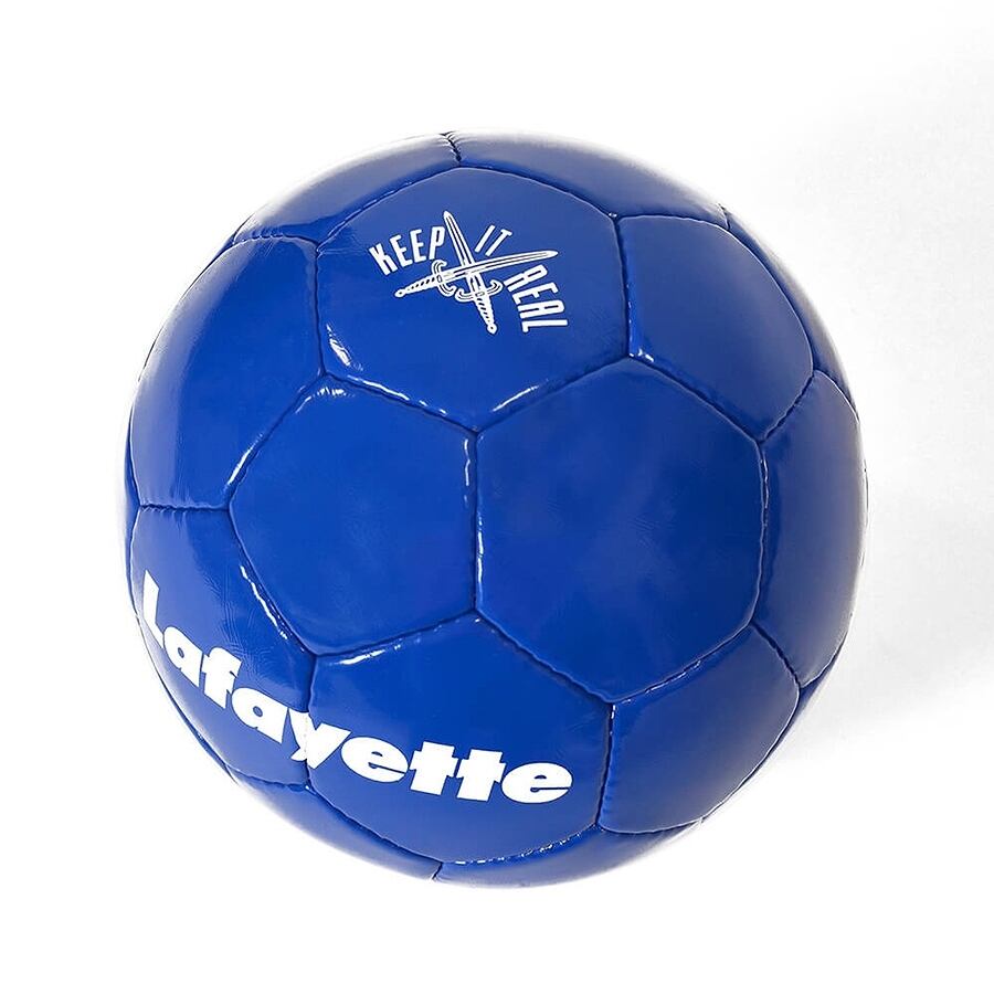 ブランドカラーであるロイヤルブルーを基調としたトレーニング用サッカーボール。表面にはLafayetteのコアロゴと「KEEP IT REAL」のロゴをホワイトでプリント。