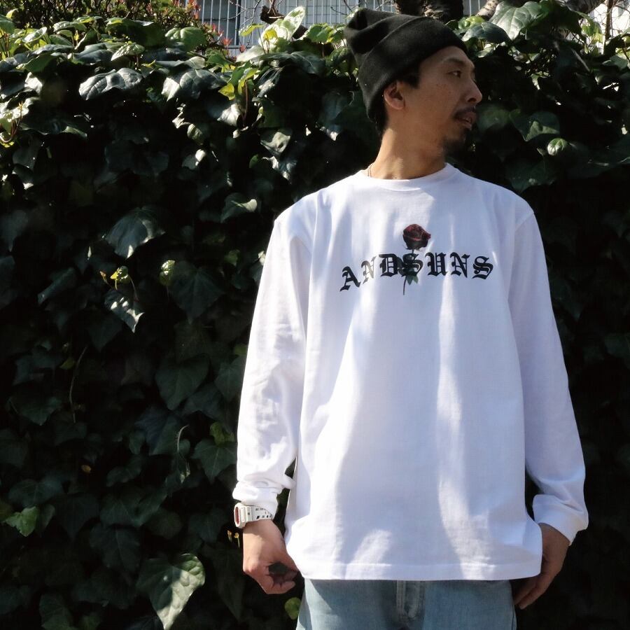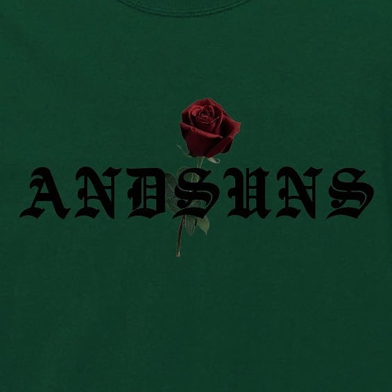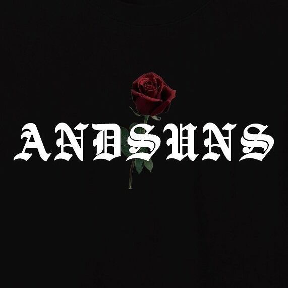 "ANDSUNS"にバラのモチーフを掛け合わせたグラフィックが配されています。