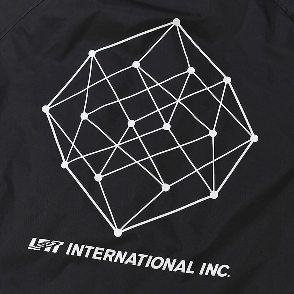 新たなメインロゴとして打ち出しているLFYT INTERNATIONALのワールドワイドなイメージを表現した、 企業風ロゴのコーチジャケット。