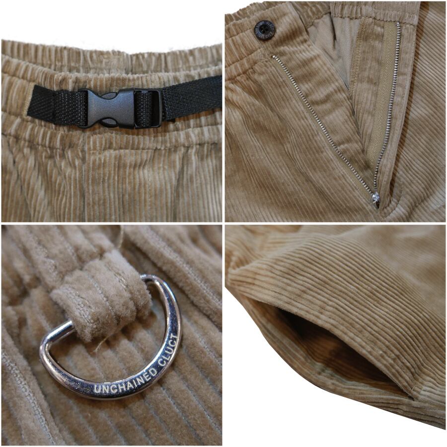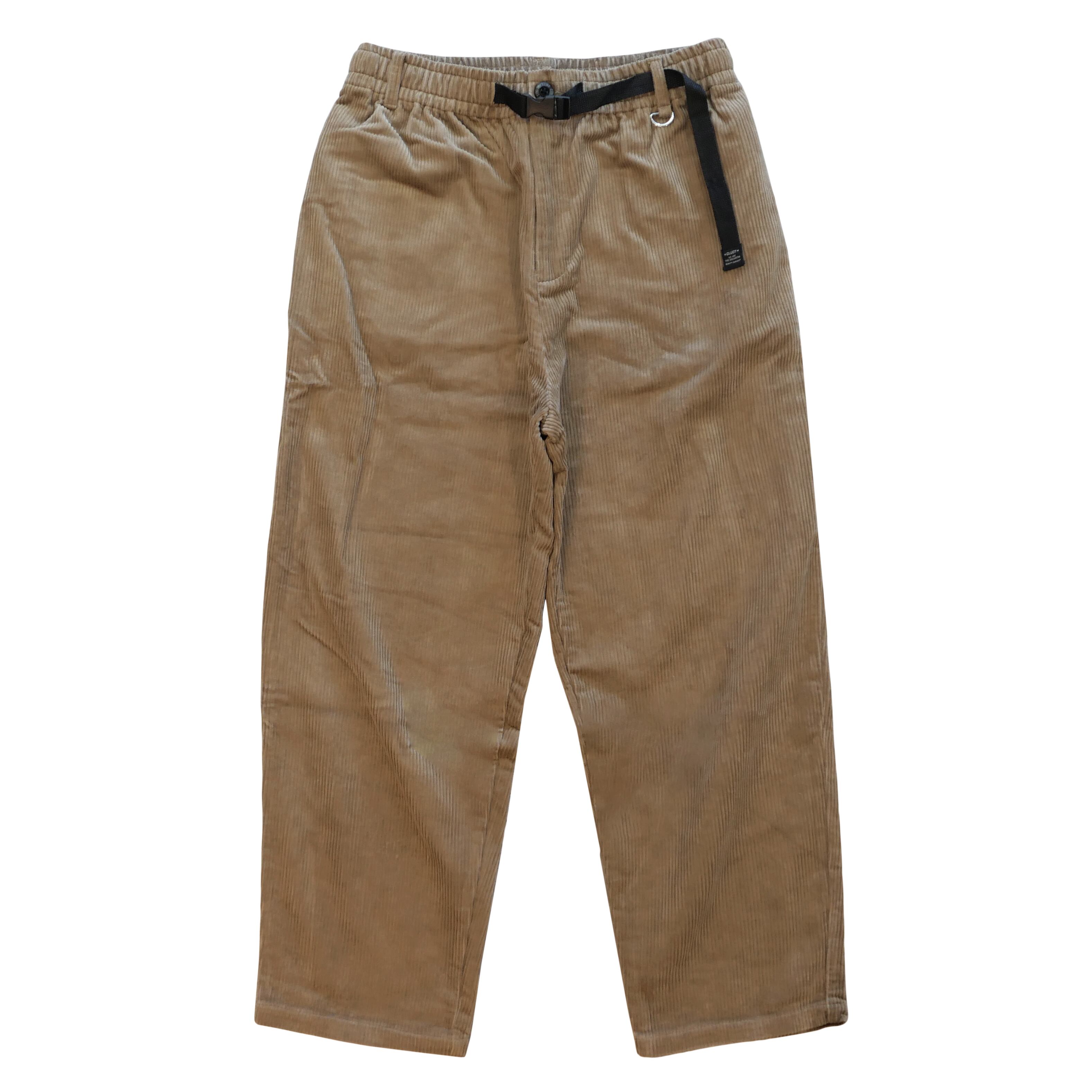 着脱が容易なウェービングベルトを使用しているイージータイプのコーデュロイパンツ。