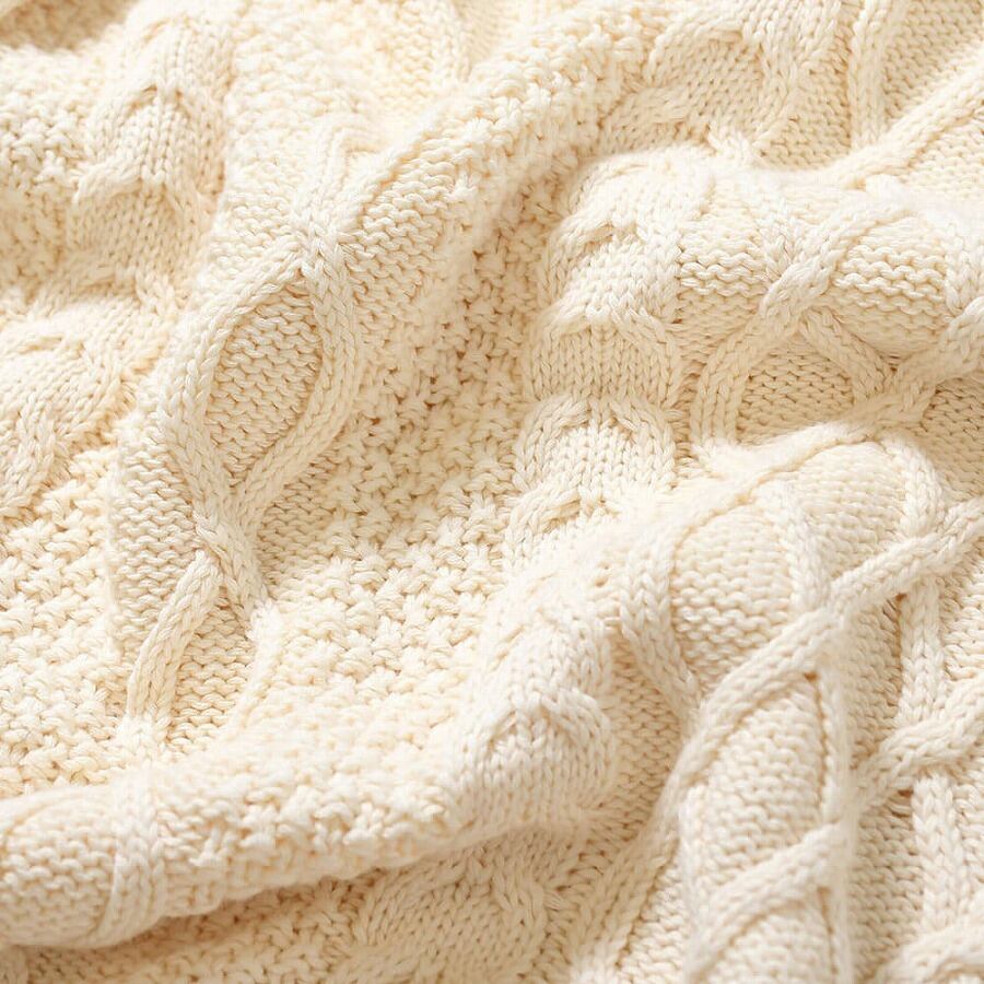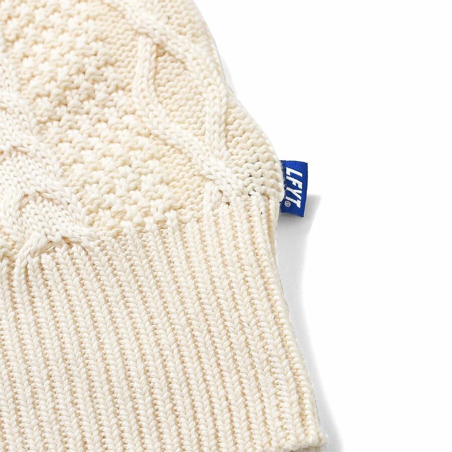 複雑なケーブル編みによるザックリとした風合いの本格的なセーターで、上品で大人っぽい雰囲気を演出するカジュアルアイテム。