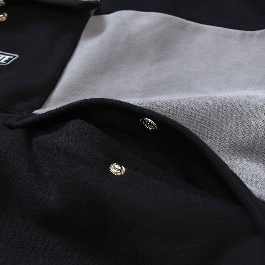 大胆な切り替えしによるカラーリングや機能性を重視した独特な配置によるポケットなどをデザインとして生かして、気軽さと着用シーズンの長いスウェットウェアに落とし込んだデイリーユース仕様。