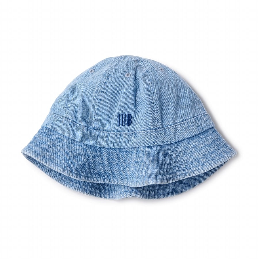 ワンポイントのロゴが入ったデニムのボウル型ハット。