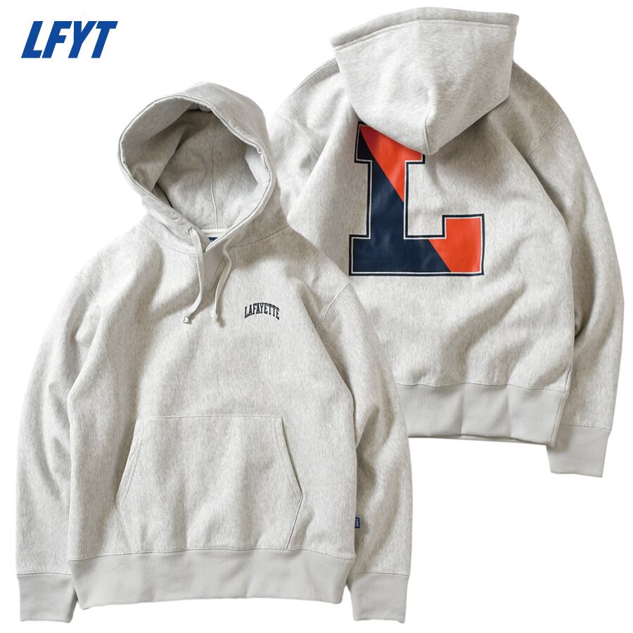 バックにはインパクトのある2トーンカラーのカレッジ調フォントの「L」ロゴのプリントがインパクト抜群。