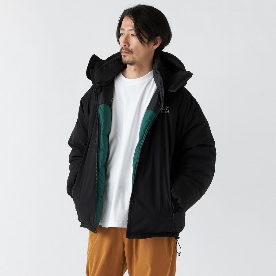 表地に打ち込みの強いしなやかなポリエステルタフタを使用し、裏地にはマットなストレッチタッサーを使用したリバーシブルダウン。