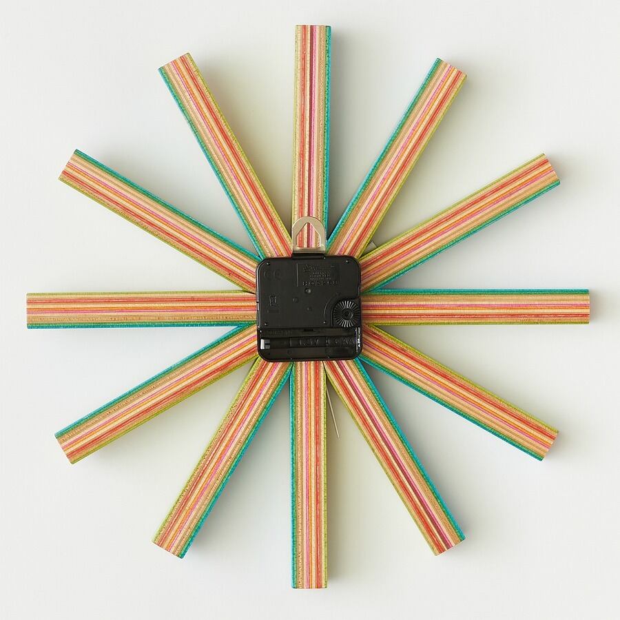 スケートデッキの廃材をリユースしたJoblessシリーズのウォールクロック。