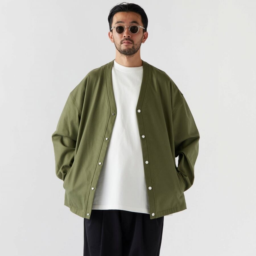 程よい肉感の柔らかなコットンサージ素材を使用したスナップカーディガン。
