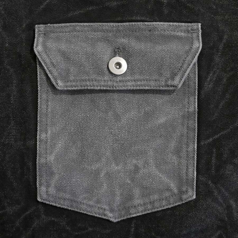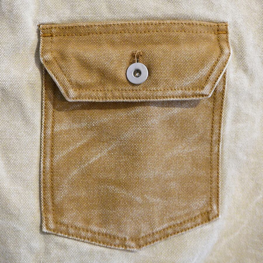 生地はゴワ感が心地良いライトなダック生地を使用し、襟/左ポケットを同系色で切り替えたデザイン。