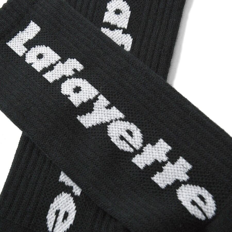 ジャガード織りでサイドにLafayetteロゴを配したシンプルなクルーソックス。