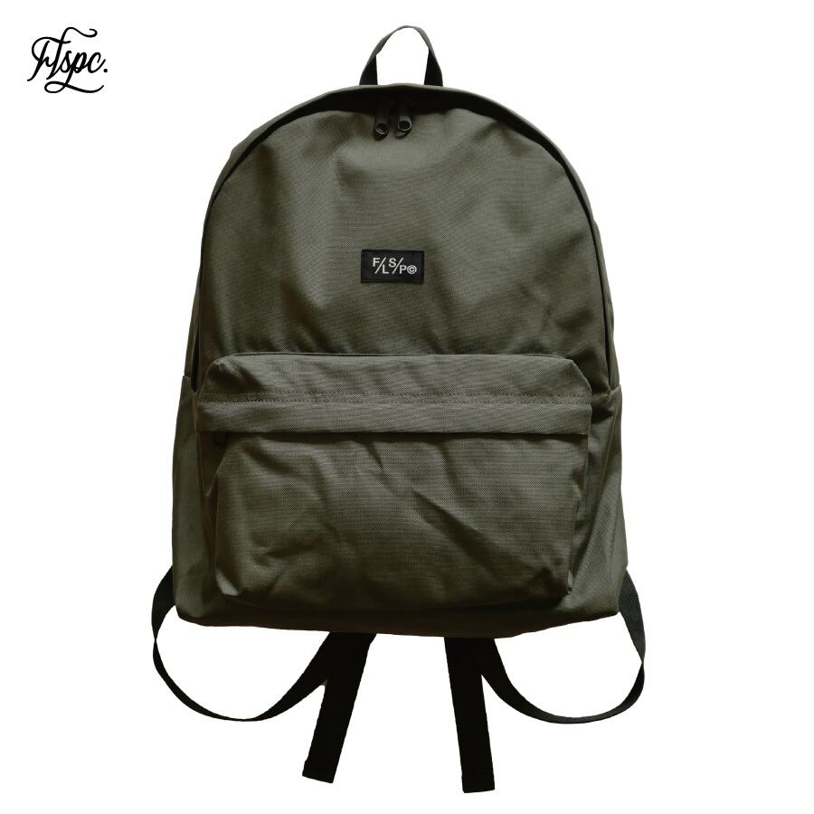 FLSPC.オリジナルタグを配したバックパック。