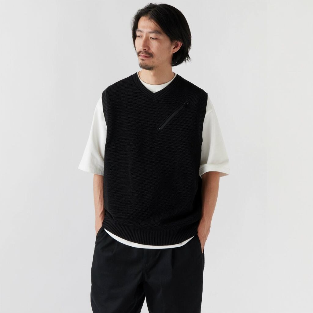 胸の斜めジップポケットはサングラスなどを収めるのに最適。