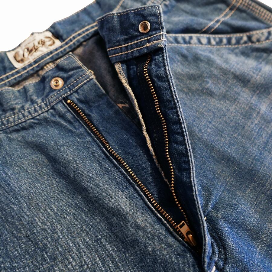 デニムの生産で有名な岡山県児島市で製造した10ozのデニム生地を使用したヴィンテージウォッシュデニム。
