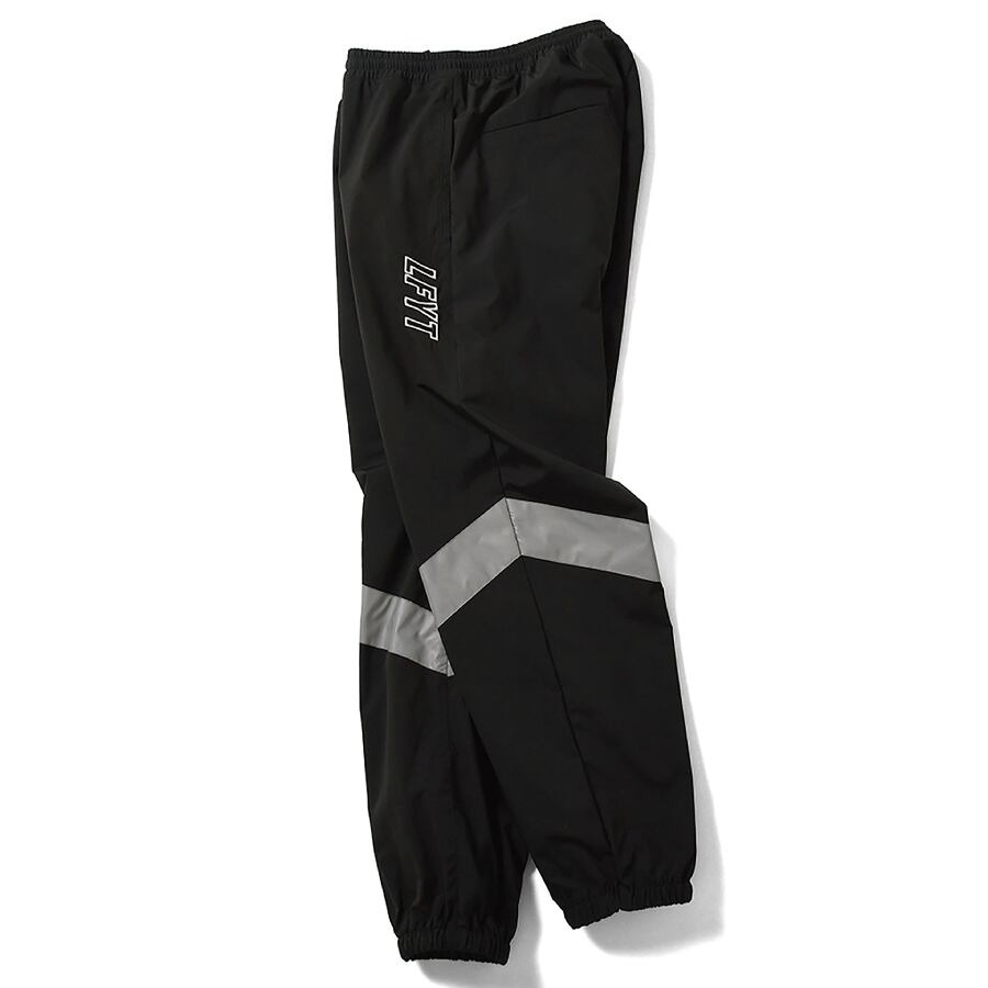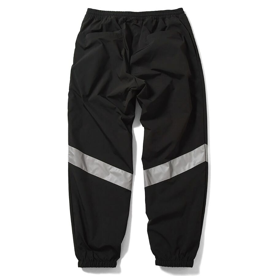 ドライな質感のポリエステル素材とリフレクター素材を使用したトラックパンツ。