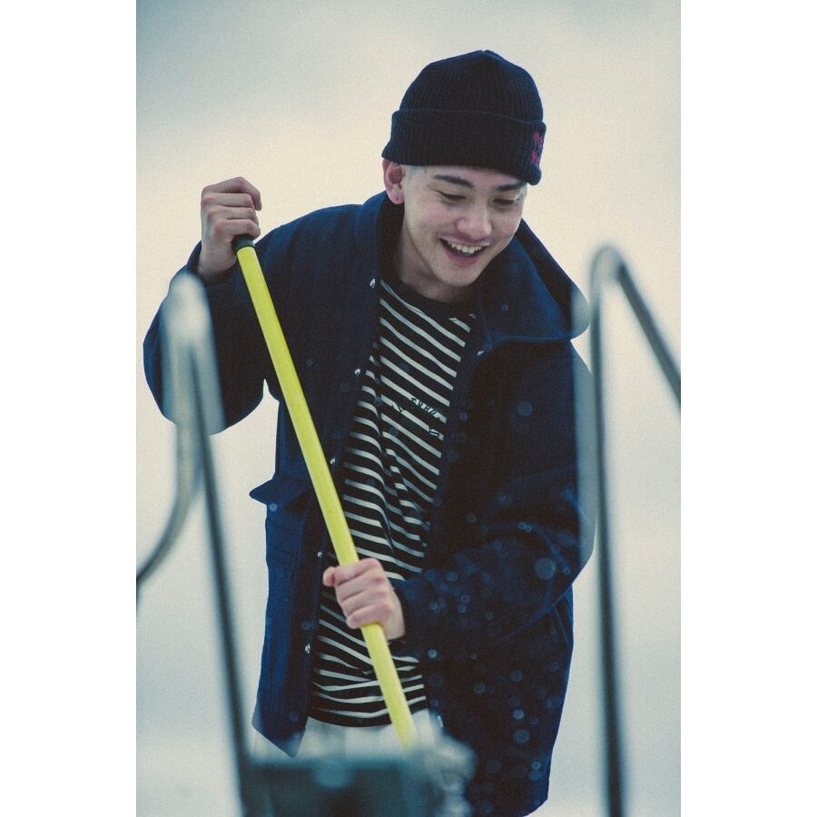 生地は通年使える軽めのボーダー天竺生地を使用し、型は身幅/肩幅をやや広めに設定したオリジナルパターンで、雰囲気有るユルいフォルムが特徴。