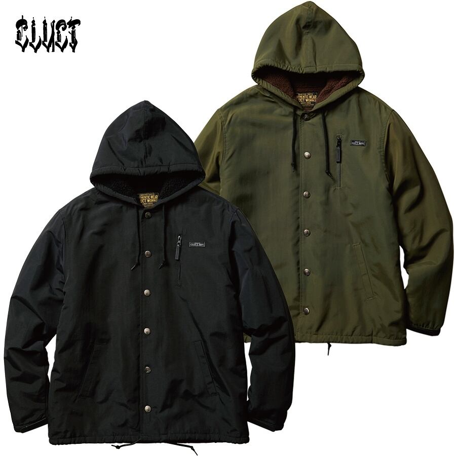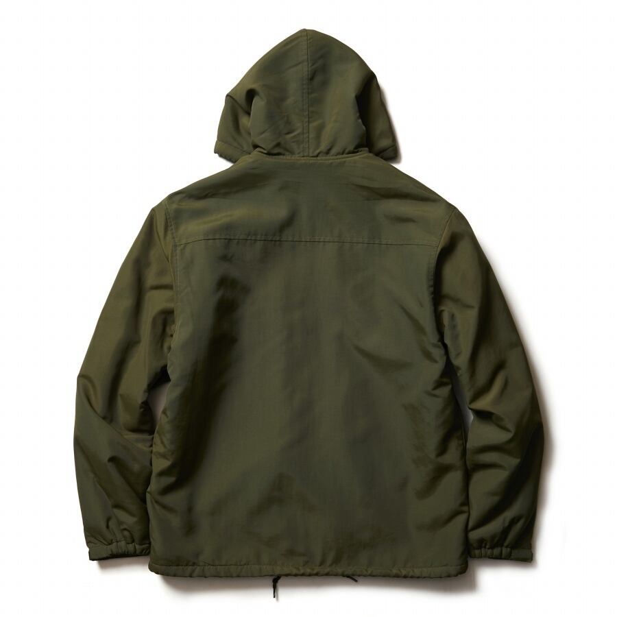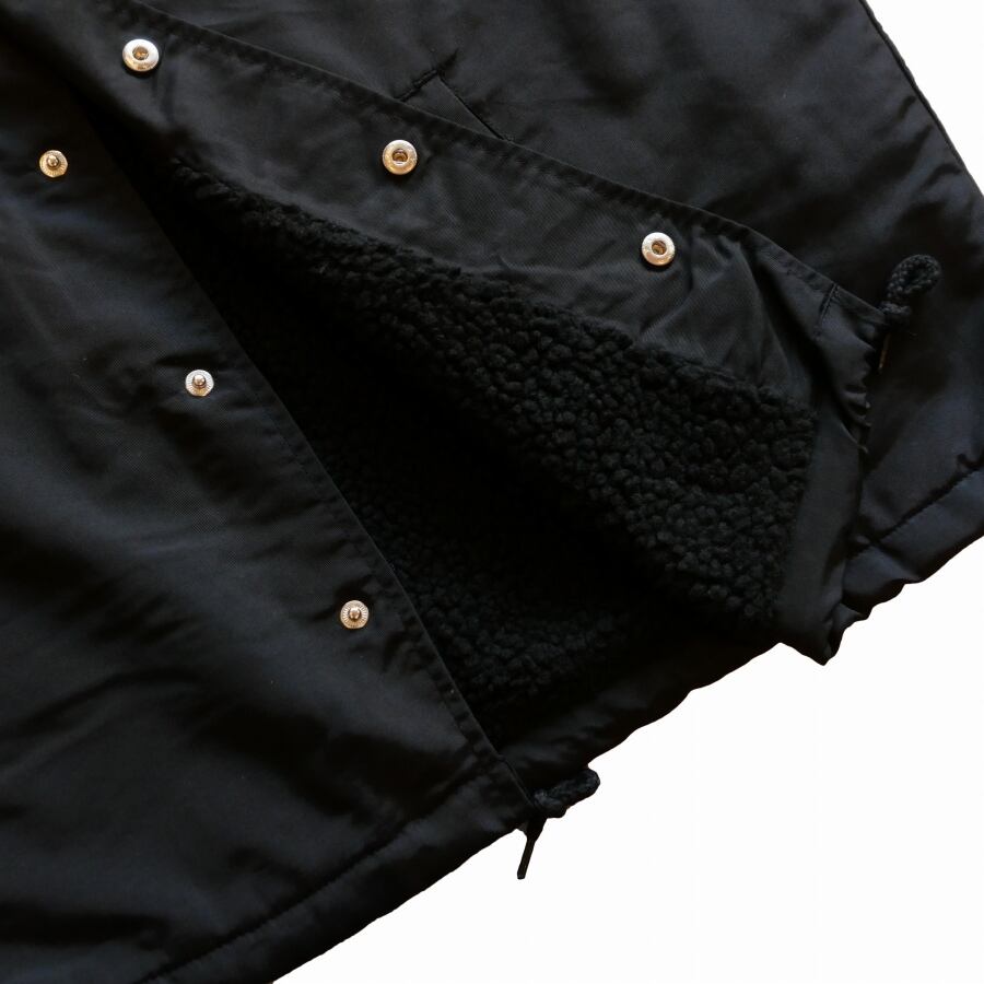 ナイロン生地を使用し裏地にボアを配したフードジャケット。