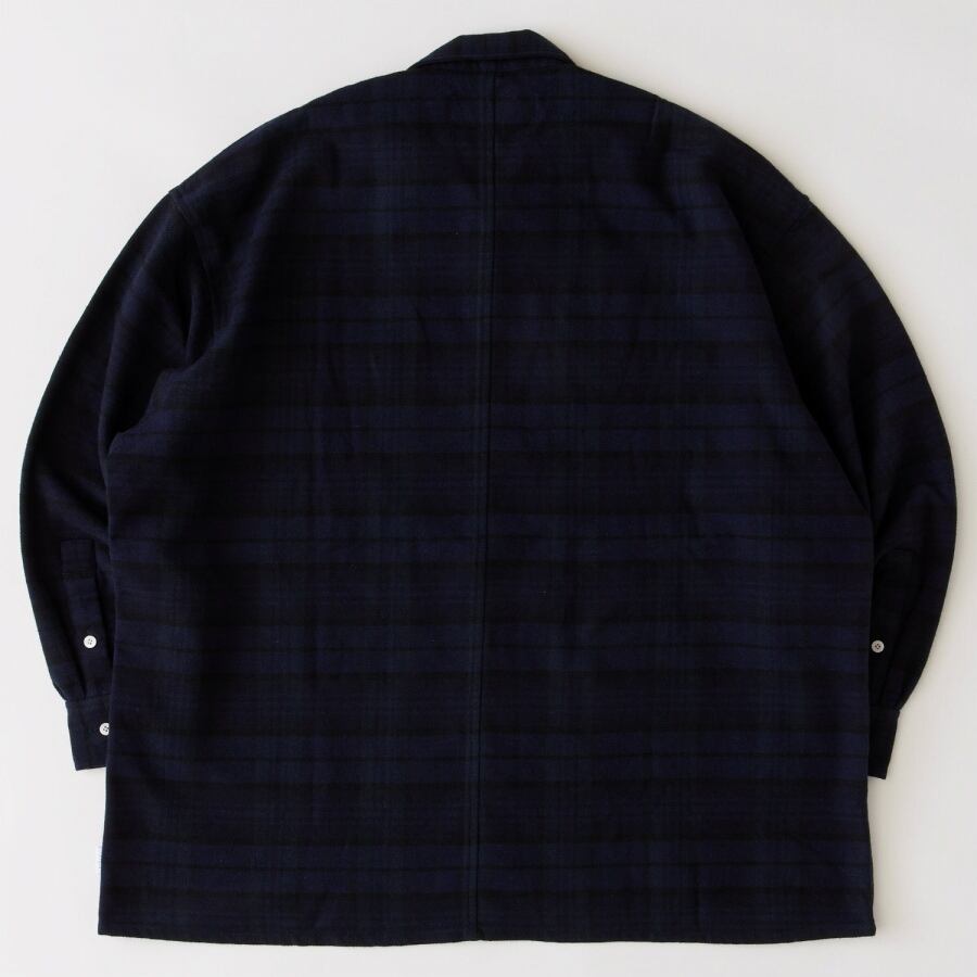 裏起毛を施したウールフラノを使用した、通常よりも身幅・肩幅にゆとりをもたせたBIGシルエットシャツ。