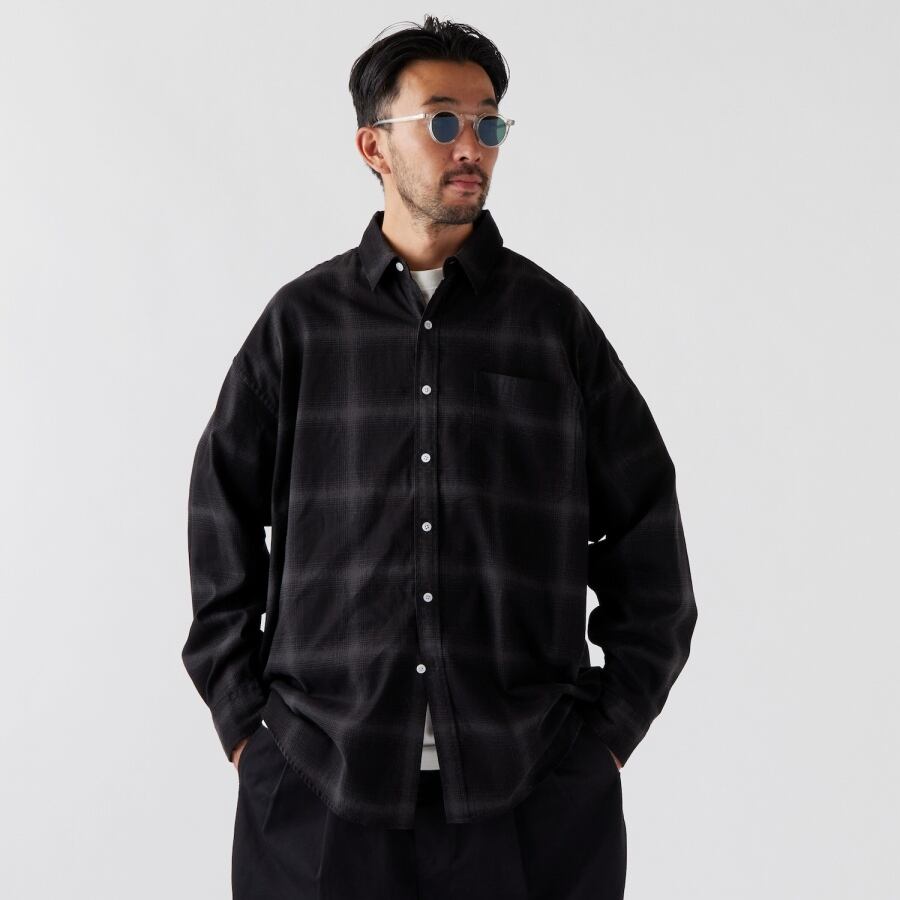 程よい肉感のオンブレプリントネルを使用した、通常よりも身幅・肩幅にゆとりをもたせたBIGシルエットシャツ。