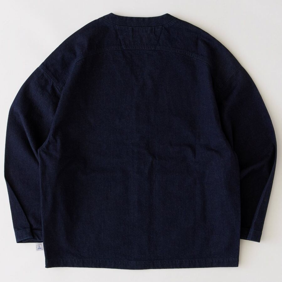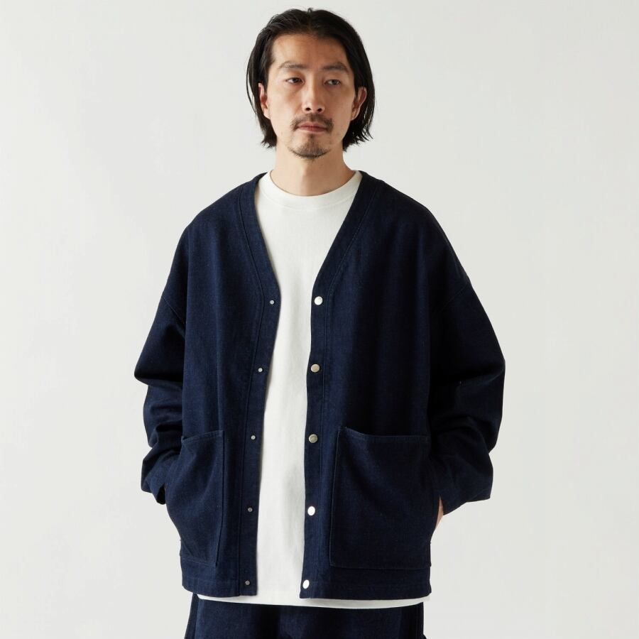 程よい肉感の12ozデニムとインディゴ刺し子を使用したスナップカーディガン。