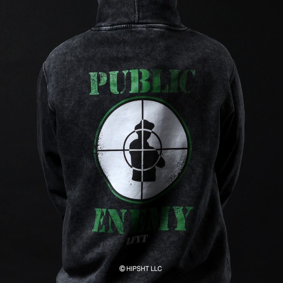 社会・政治・マスメディア問題に対する積極的な活動で知られるニューヨークのロングアイランド出身ハードコアヒップホップ・グループ「PUBLIC ENEMY」(パブリック・エネミー)との公式コラボフーディ。