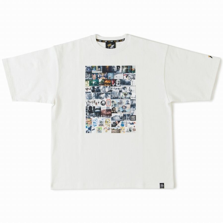 FAT×Sbが敬愛するアーティストの作品を網羅したコラージュグラフィックが強烈な個性とインパクトを与えてくれる13oz Tee。